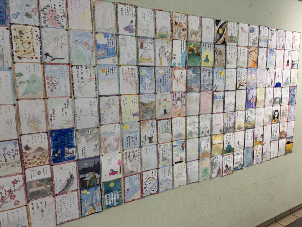 なお、現在C館に中学1、2年生が作成した百人一首のカードが掲示されています。